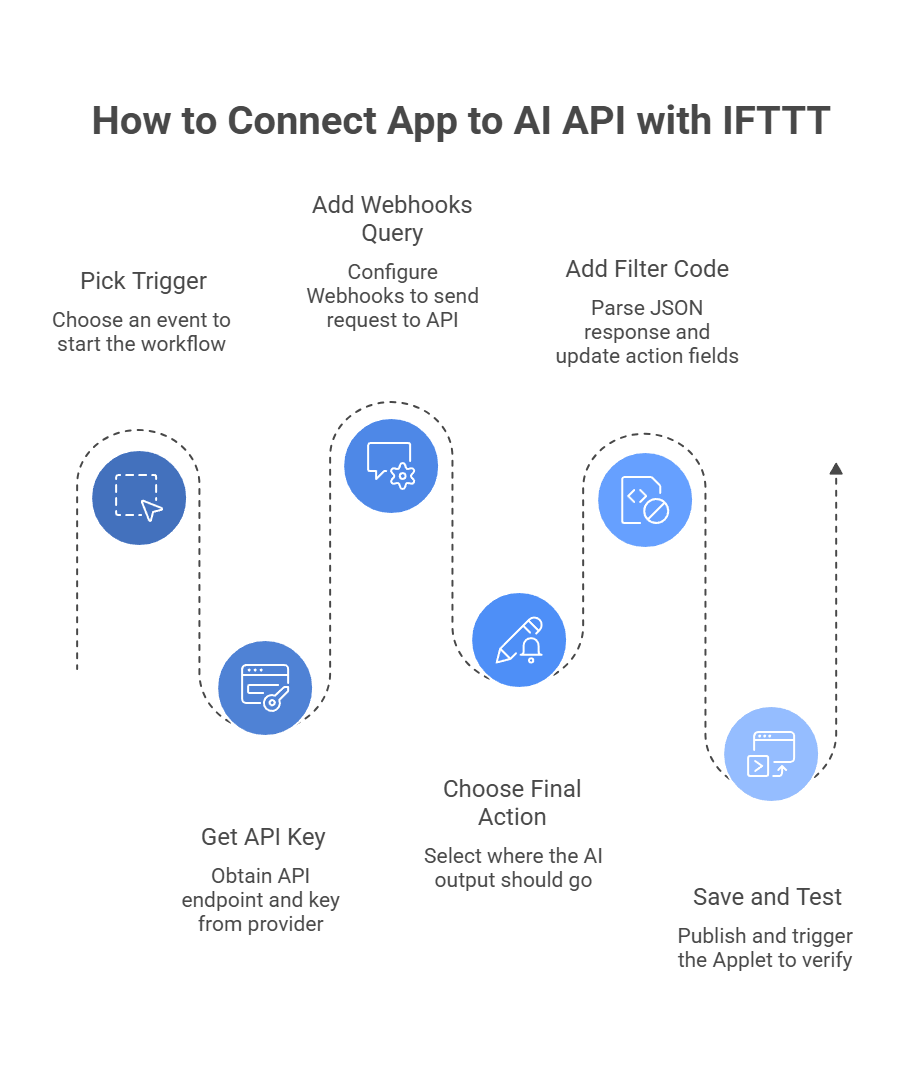 Below, let’s walk through how to build an IFTTT setup that listens for an event, sends data to an AI API, handles the response, and pushes that output back into your workflow.