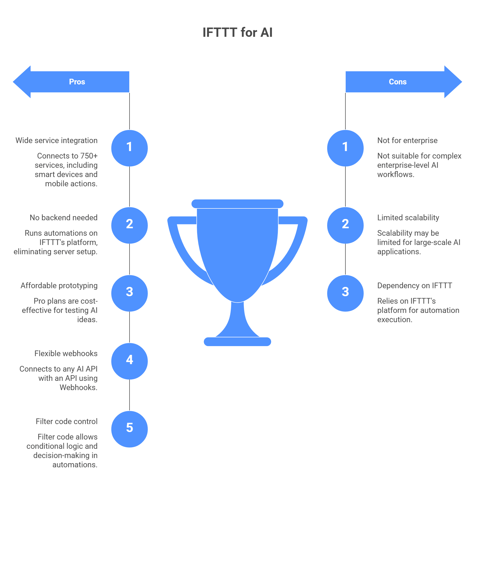 | Using IFTTT like a full backend | Heavy logic or long workflows can hit platform limits. | Keep IFTTT for fast, simple AI tasks. |